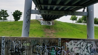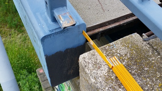 ![]() Geländer auf der Seeseite , Wasserlache in der Brückenmitte? |